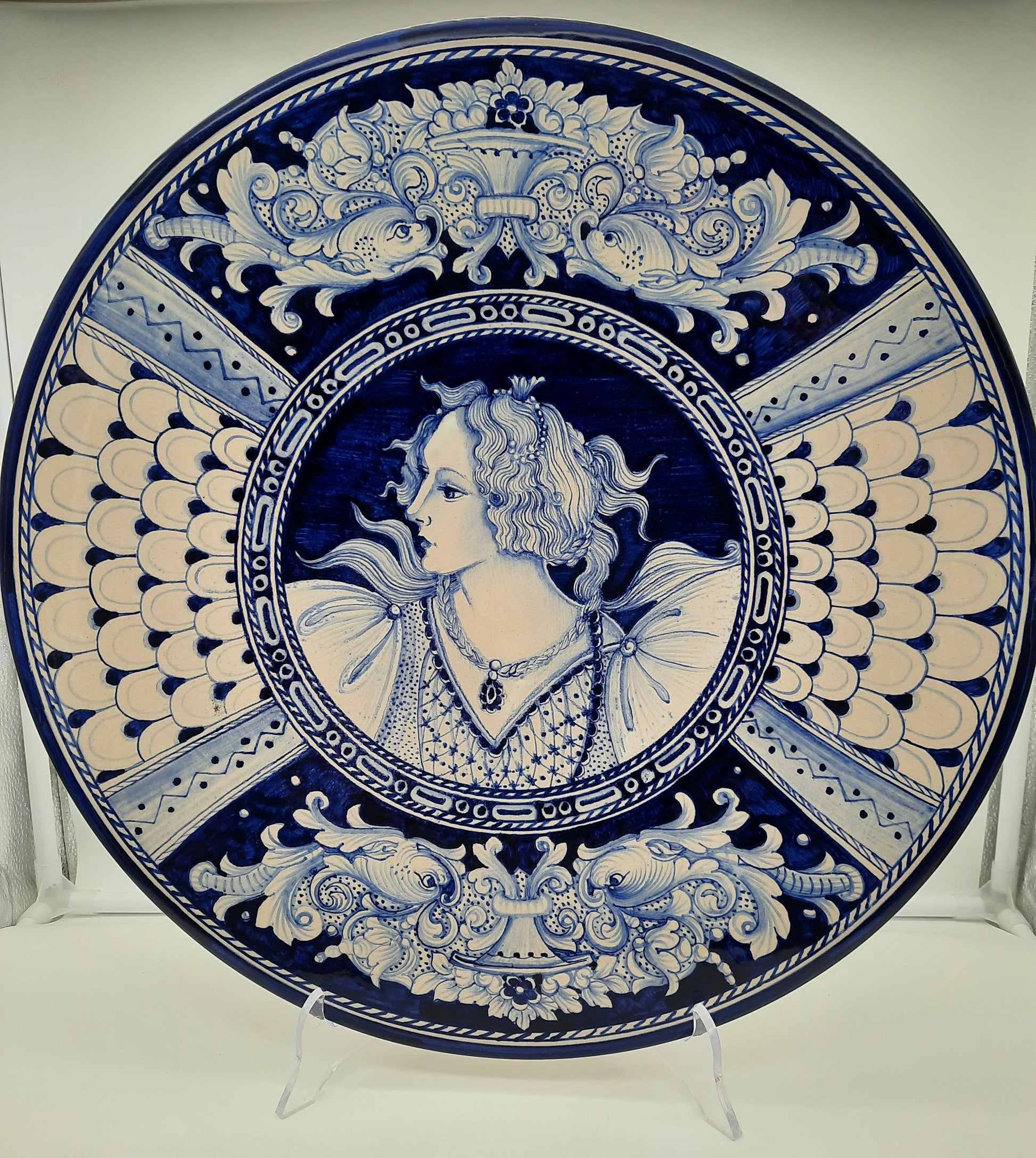 Piatto cm 46 Figura Classica. In questo piatto l'unico colore utilizzato è il Blu con sfondo bianco di smalto opaco.