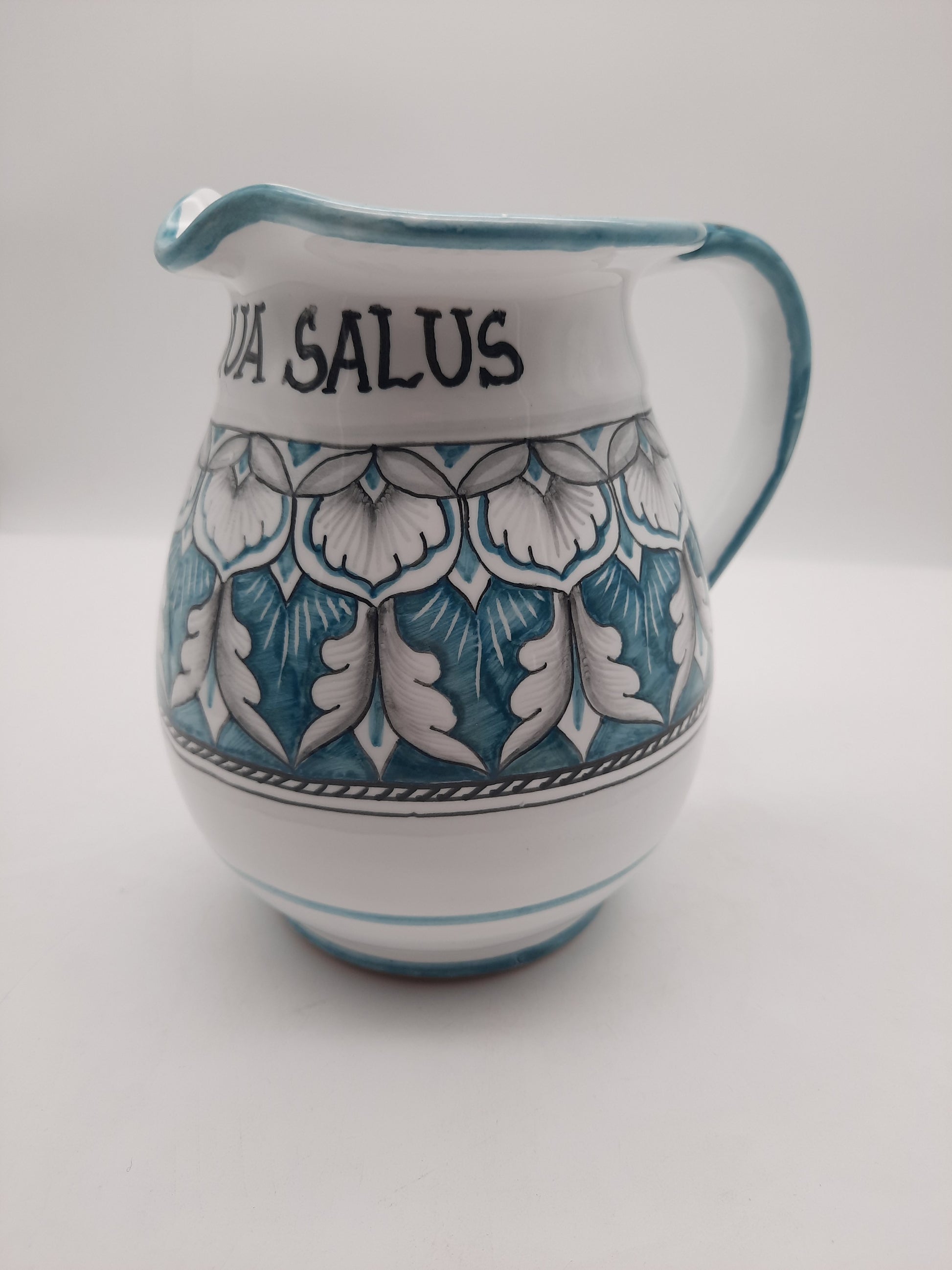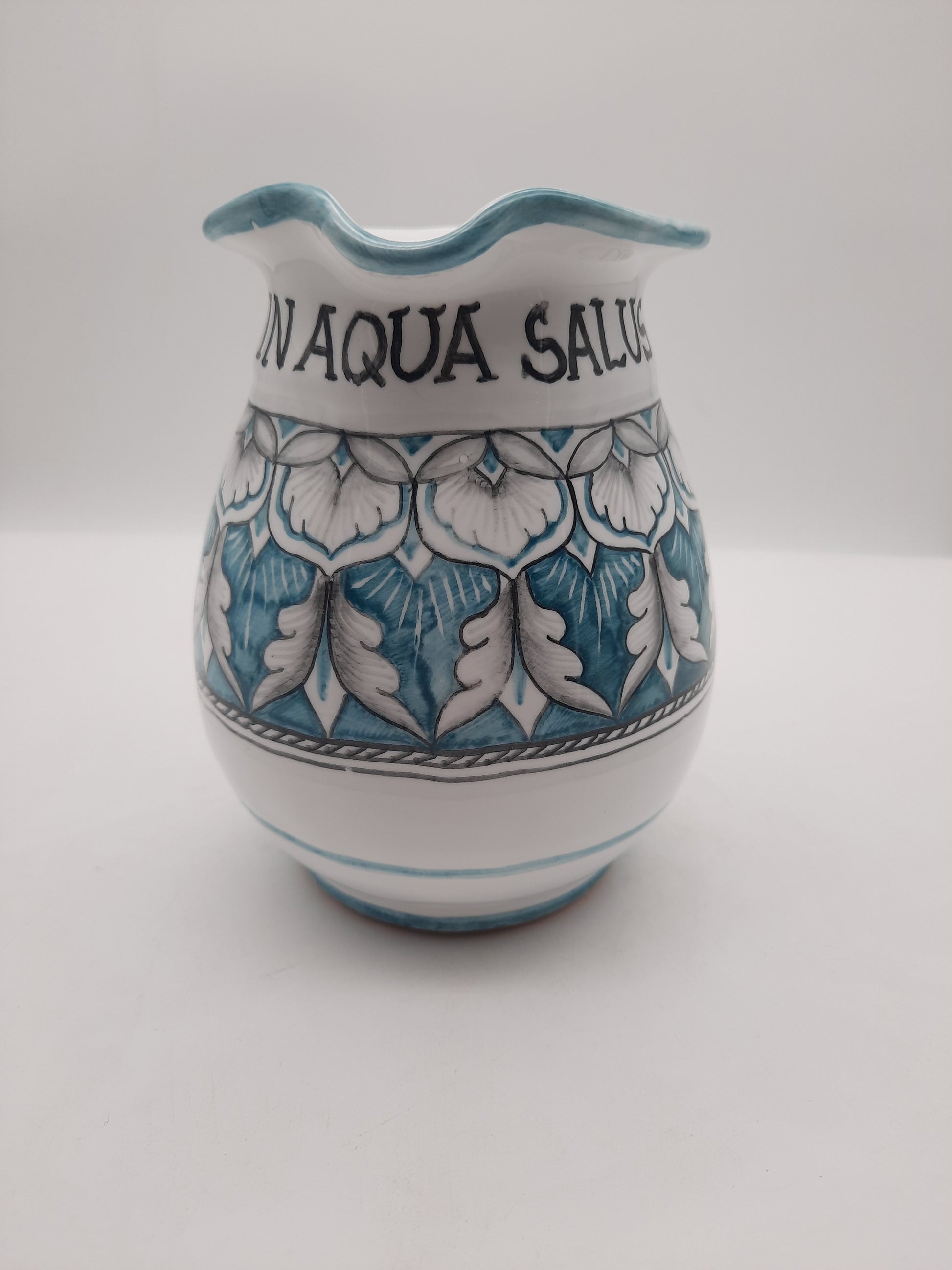 Brocca da 1 litro con manico e scritta dipinta a mano. Possibilità di scrivere anche "in vino veritas"