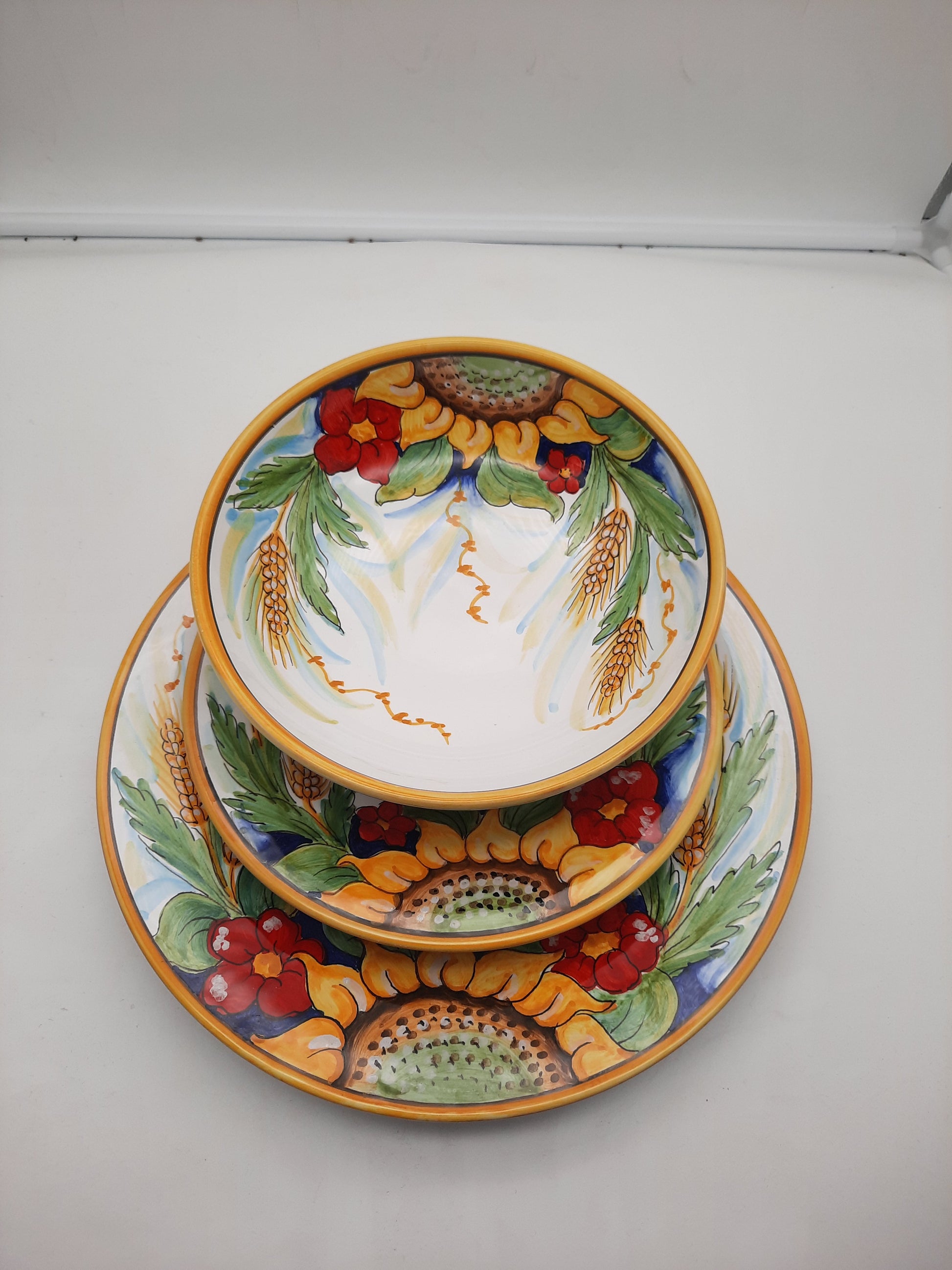Piatto piano cm 28 dipinto a mano abbinabile con piatto frutta cm 22 e ciotola cm 20 ideale per decorare la tua tavola estiva