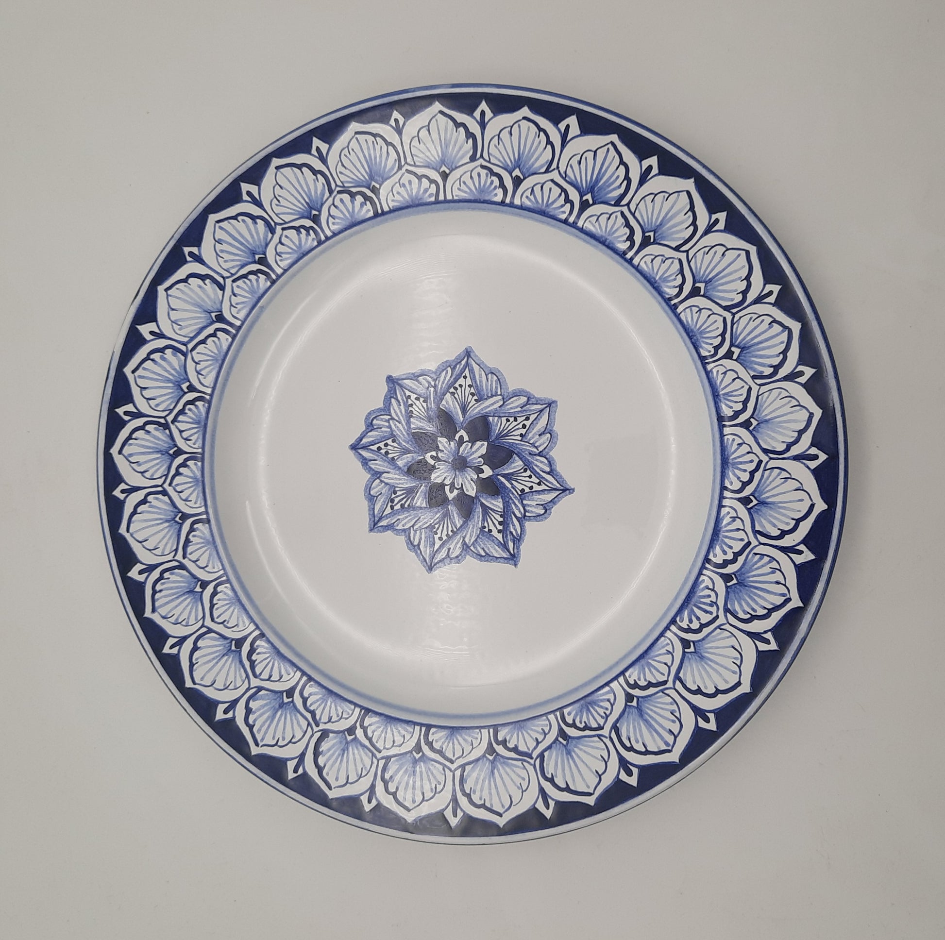 Piatto piano cm 28 in ceramica dipinto a mano decoro Blù . Una tavola monocroma raffinata ed elegante.