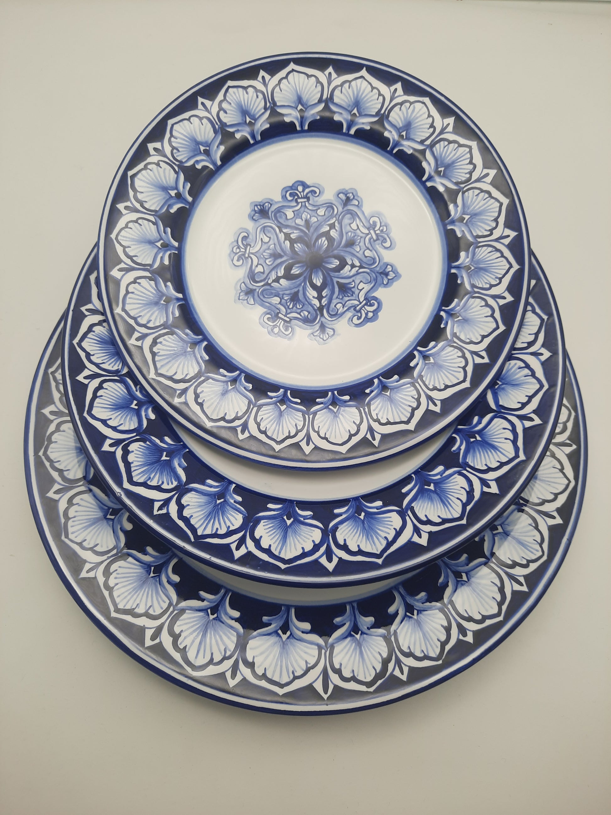 Posto tavola composto da piatto piano cm 28, piatto fondo cm 25, piatto frutta cm 22 e ciotola cm 20.